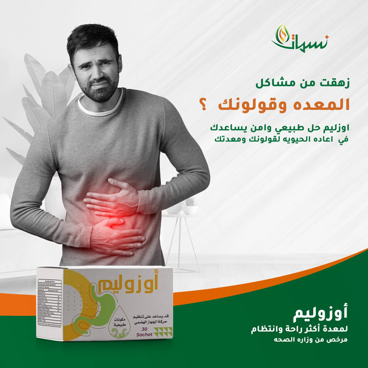 أوزوليم – مكمل طبيعي لتنظيف القولون وتحسين الهضم، مرخص من وزارة الصحة رقم 10732/2022.